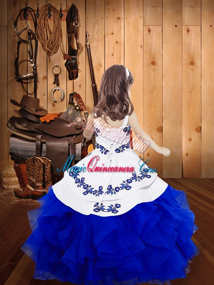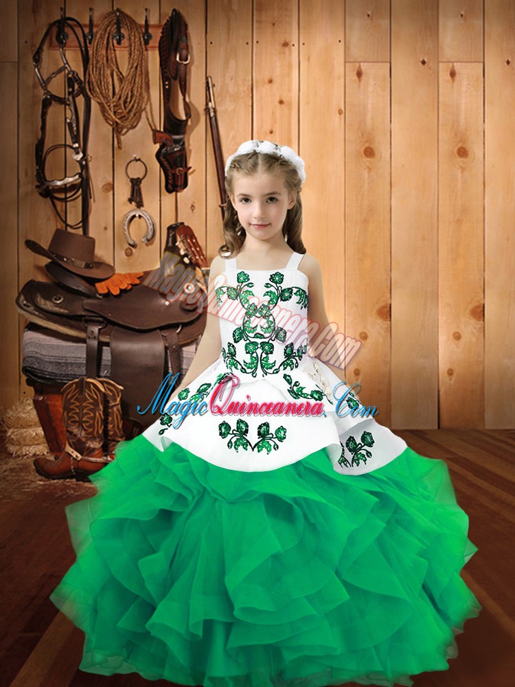 Turquoise Sleeveless Floor Length Embroidery and Ruffles Lace Up Winning Pageant Gowns