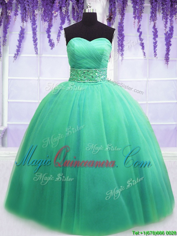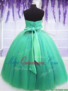 Turquoise Sleeveless Tulle Lace Up Sweet 16 Dresses for Military Ball and Sweet 16 and Quinceanera