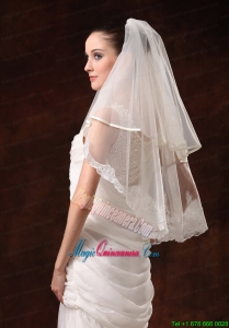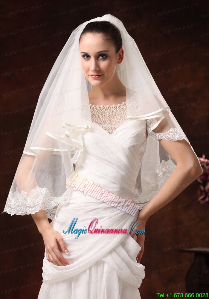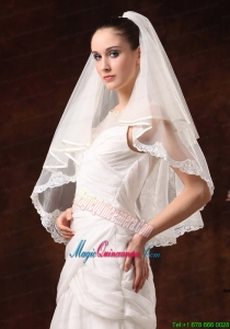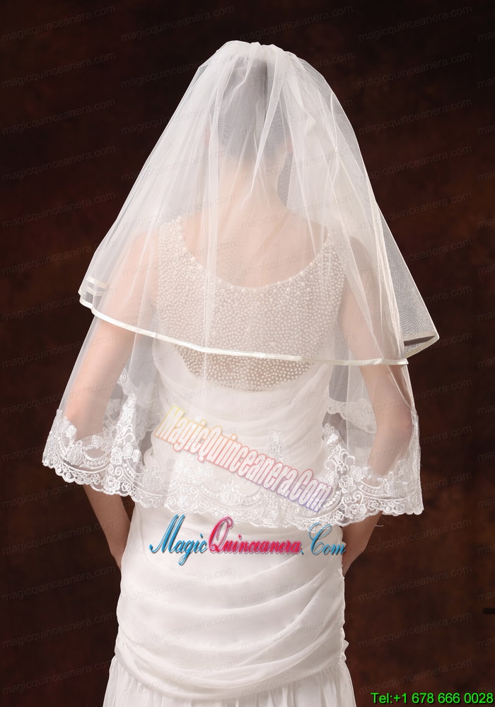 , Two-tier Elbow Wedding Veil With Scalloped Edge