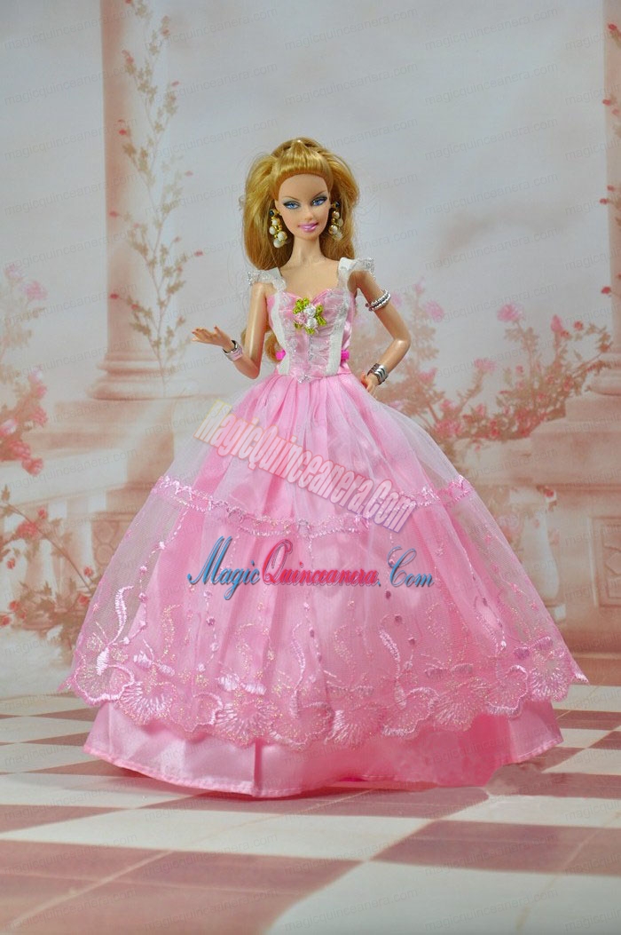 , Unique Baby Pink Straps Ruffed Layeres Appliques Made to Fit the Barbie Doll
