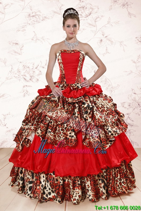 Unique Leopard Multi Color 2015 Quinceanera Dresses with Strapless