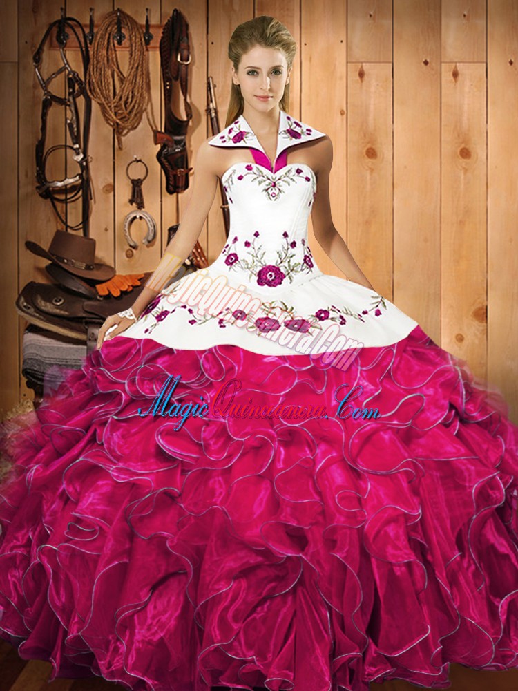 Unique Sleeveless Embroidery and Ruffles Lace Up Vestidos de Quinceanera