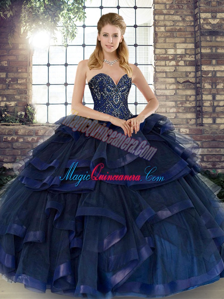Unique Sleeveless Lace Up Floor Length Beading and Ruffles 15th Birthday Dress