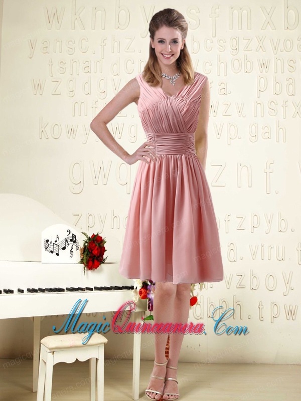 v neck dama quinceanera dresses, V Neck Empire Chiffon Ruching Dama Dresses for 2015