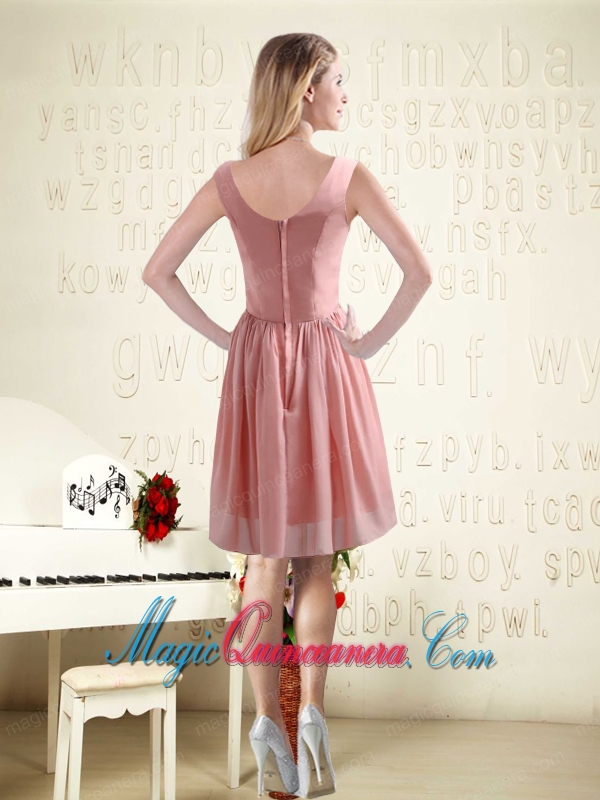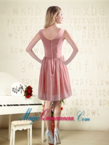 V Neck Empire Chiffon Ruching Dama Dresses for 2015