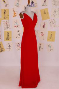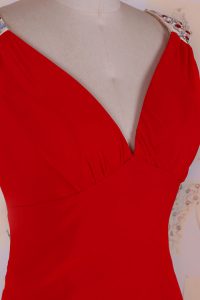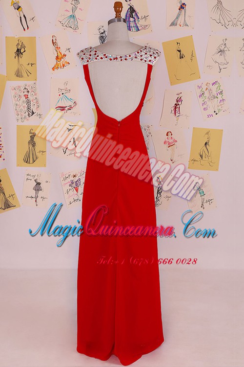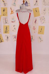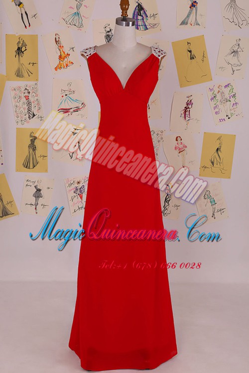 V-neck Sleeveless Backless Dress for Prom Red Chiffon