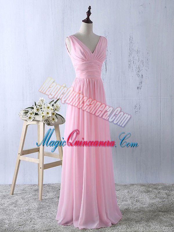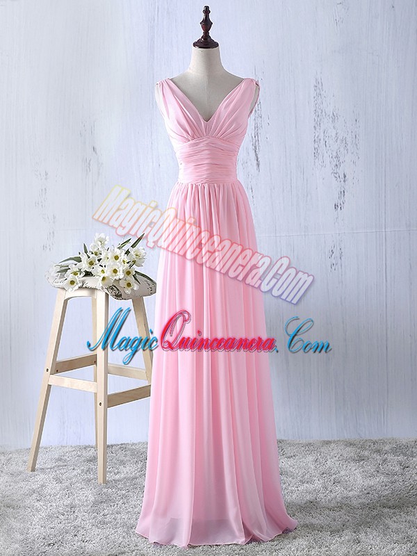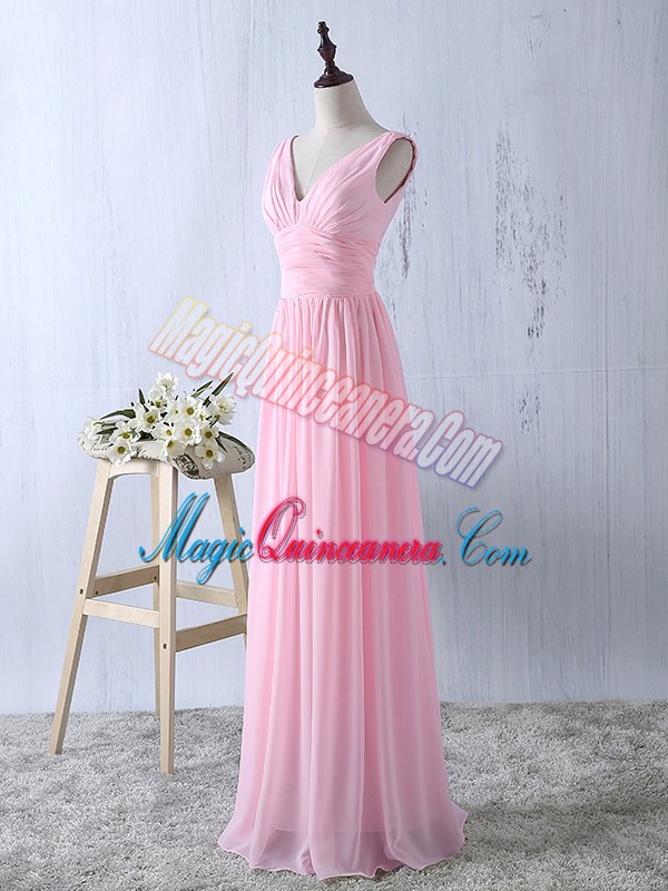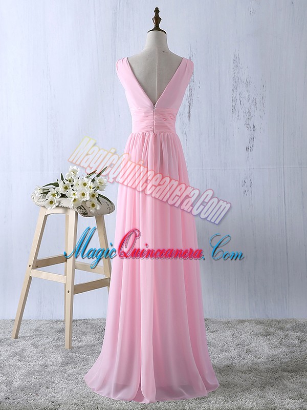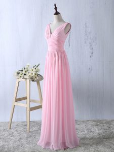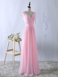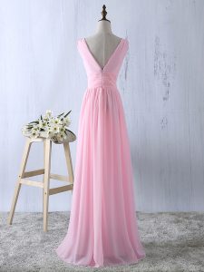 V-neck Sleeveless Chiffon Court Dresses for Sweet 16 Ruching Zipper