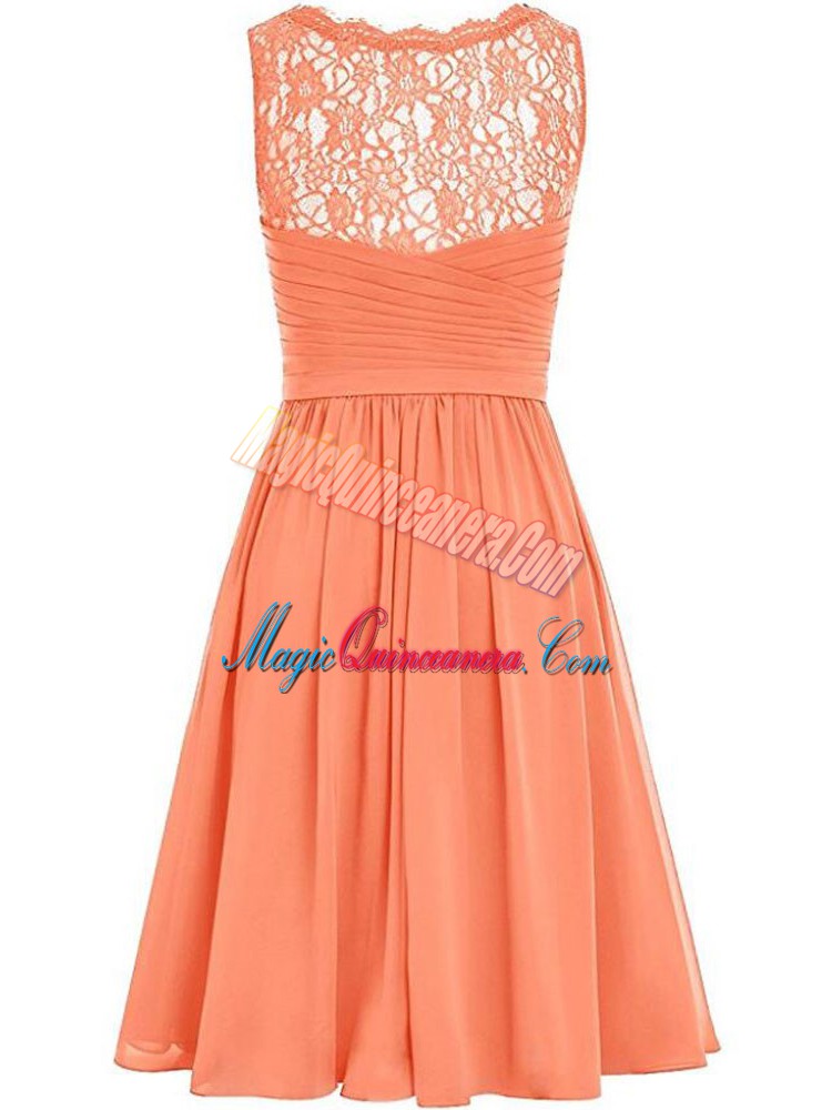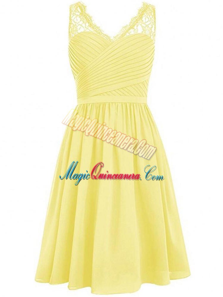 V-neck Sleeveless Chiffon Damas Dress Lace and Ruching Side Zipper