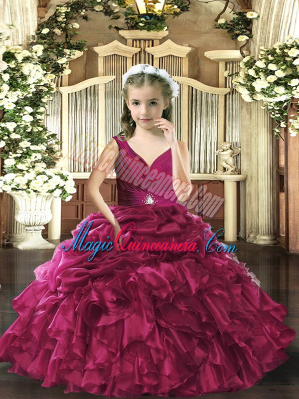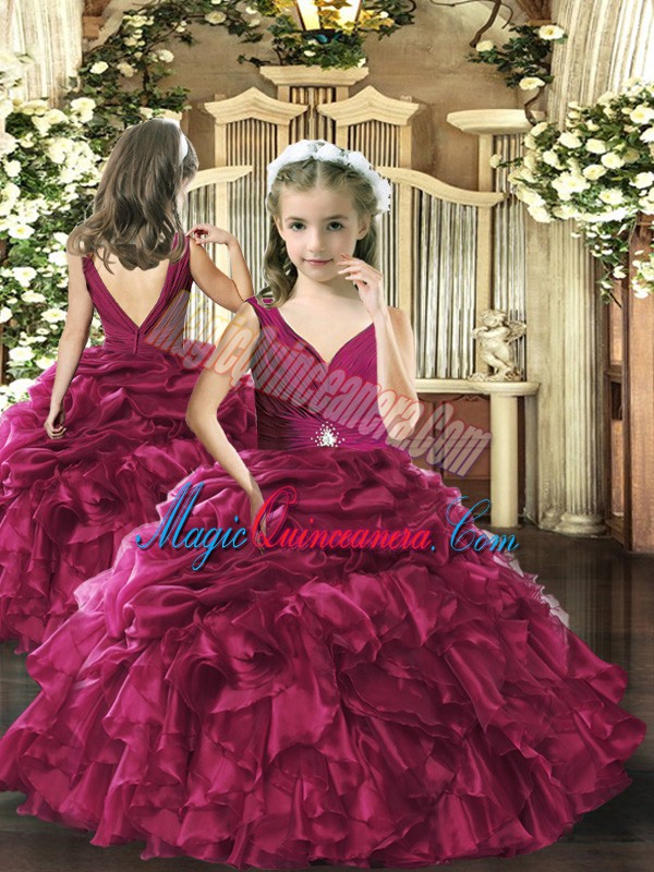 V-neck Sleeveless Organza Pageant Dresses Beading and Ruffles and Pick Ups Backless