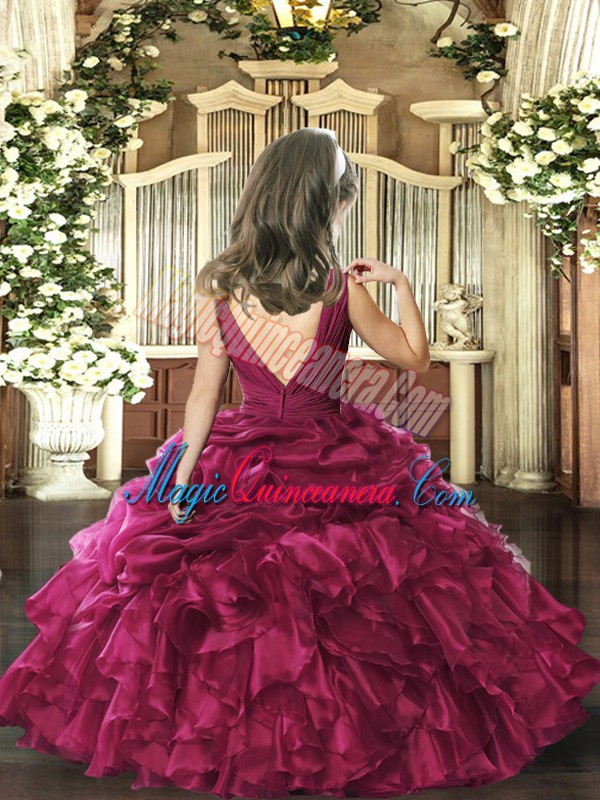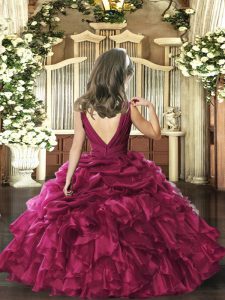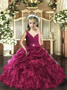 , V-neck Sleeveless Organza Pageant Dresses Beading and Ruffles and Pick Ups Backless