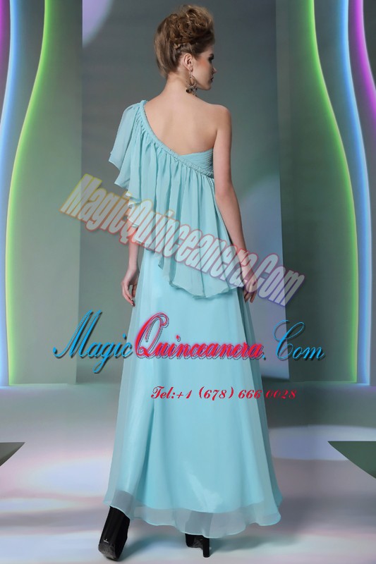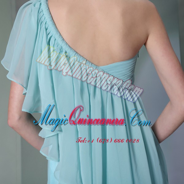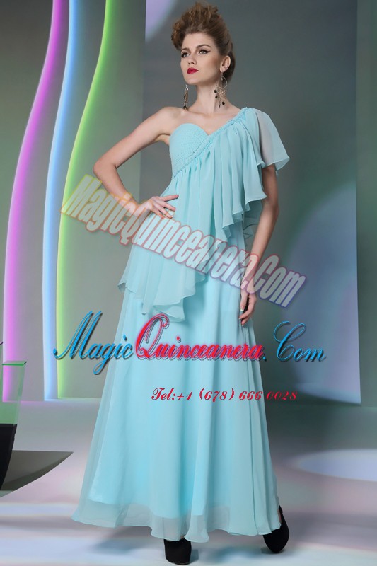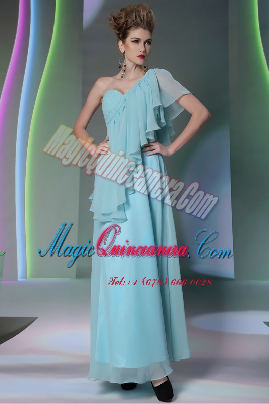 , Vintage One Shoulder Cap Sleeves Ruffles Side Zipper Prom Dress