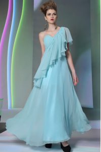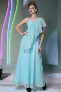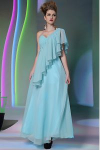Vintage One Shoulder Cap Sleeves Ruffles Side Zipper Prom Dress