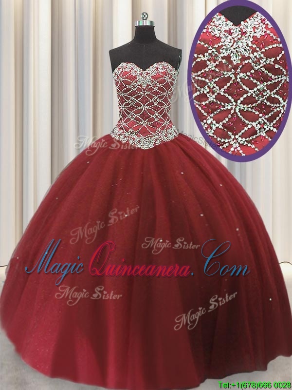 Vintage Red Lace Up Vestidos de Quinceanera Beading and Sequins Sleeveless Floor Length