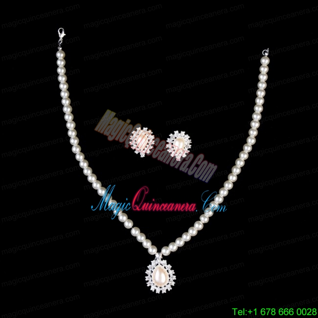 Vintage Style Pearl With Rhinestone Drop Necklace And Earring Set
