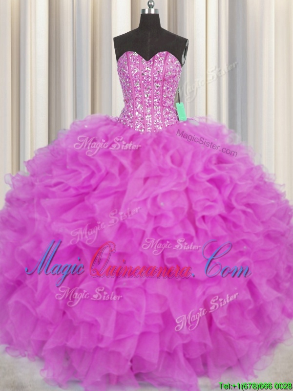 Visible Boning Organza Sleeveless Floor Length 15th Birthday Dress and Beading and Ruffles