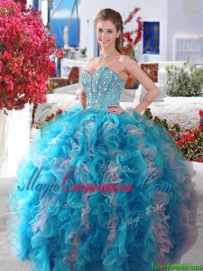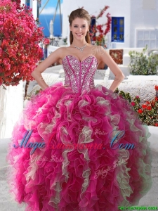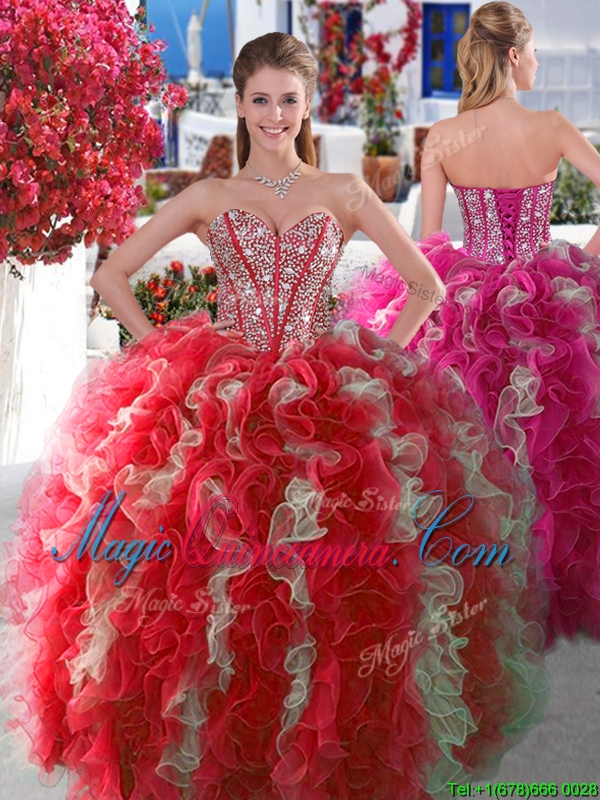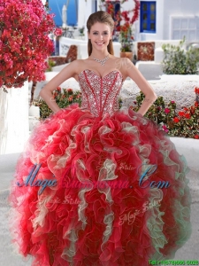 Visible Boning Beaded and Ruffled Quinceanera Gown in Red and White