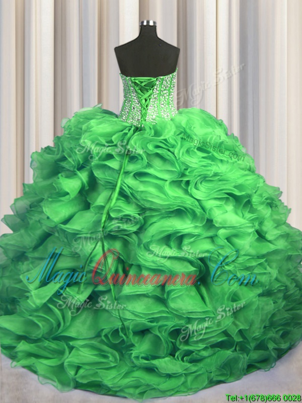 Visible Boning Bling-bling With Train Ball Gowns Sleeveless Ball Gown Prom Dress Sweep Train Lace Up