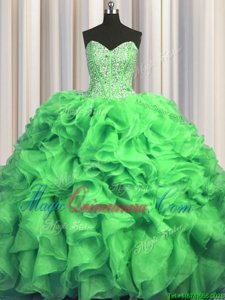 Sweetheart Sleeveless Organza Sweet 16 Dress Beading and Ruffled Layers Lace Up