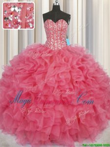 Visible Boning Organza Sleeveless Floor Length 15th Birthday Dress and Beading and Ruffles
