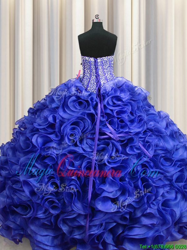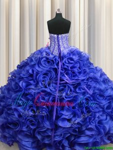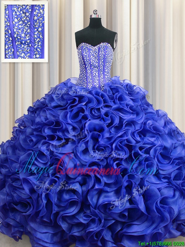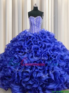 Visible Boning Royal Blue Sweetheart Lace Up Beading and Ruffles Sweet 16 Dresses Sleeveless