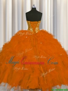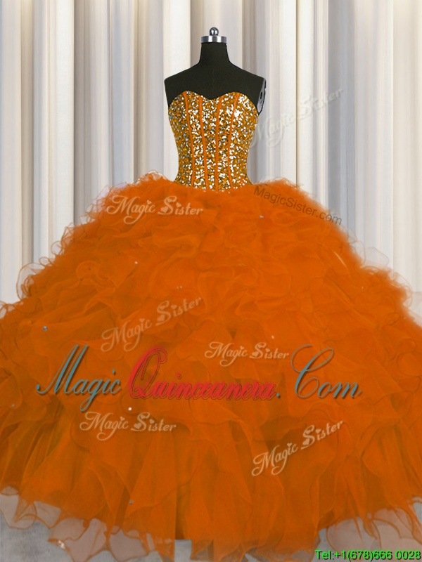 You're reviewing: Visible Boning Rust Red Lace Up Quinceanera Dresses Beading and Ruffles and Sequins Sleeveless Floor Length