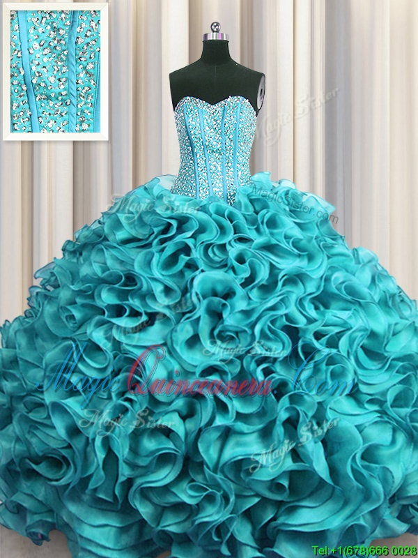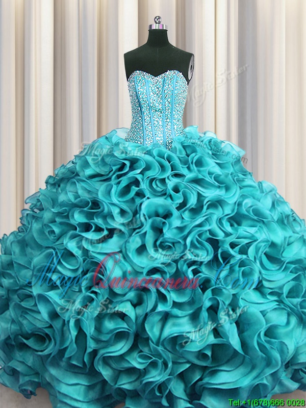 Visible Boning Sweetheart Sleeveless Organza Vestidos de Quinceanera Beading and Ruffles Lace Up