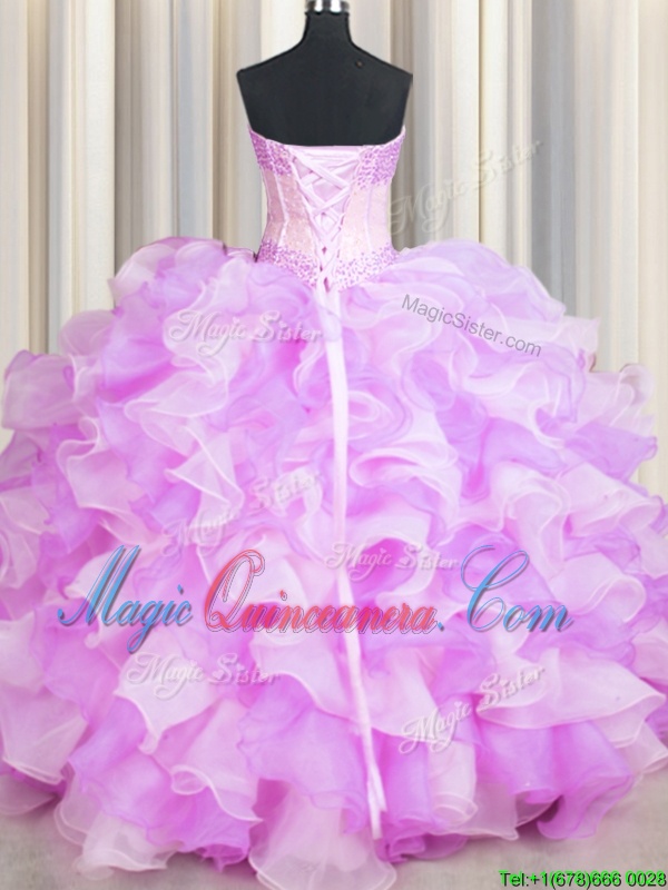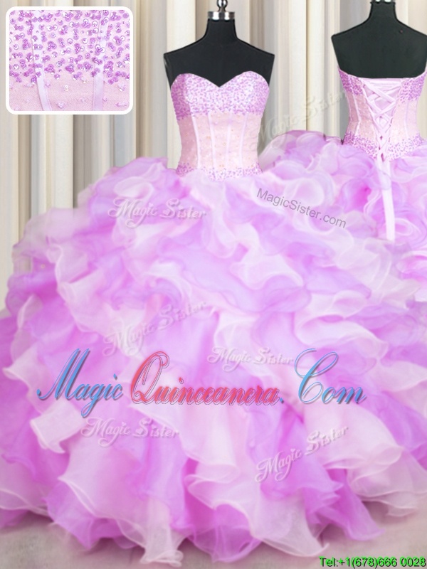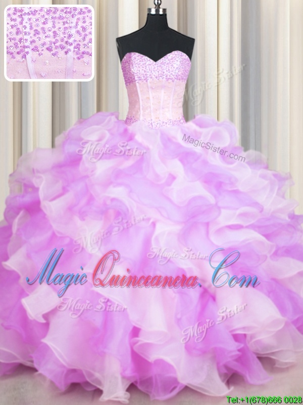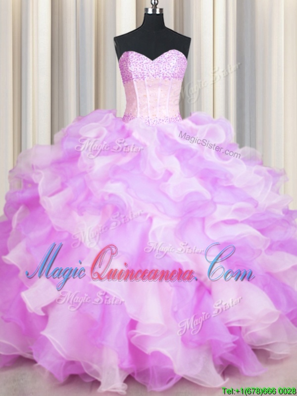 You're reviewing: Visible Boning Two Tone Multi-color Sleeveless Floor Length Beading and Ruffles Lace Up Quinceanera Gowns