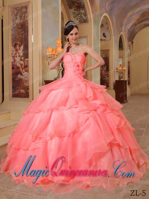 latest quinceanera gowns in variety of size and style, Watermelon Ball Gown Sweetheart Floor-length Organza Beading Cute Quinceanera Dress