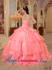 Watermelon Ball Gown Sweetheart Floor-length Organza Beading Cute Quinceanera Dress