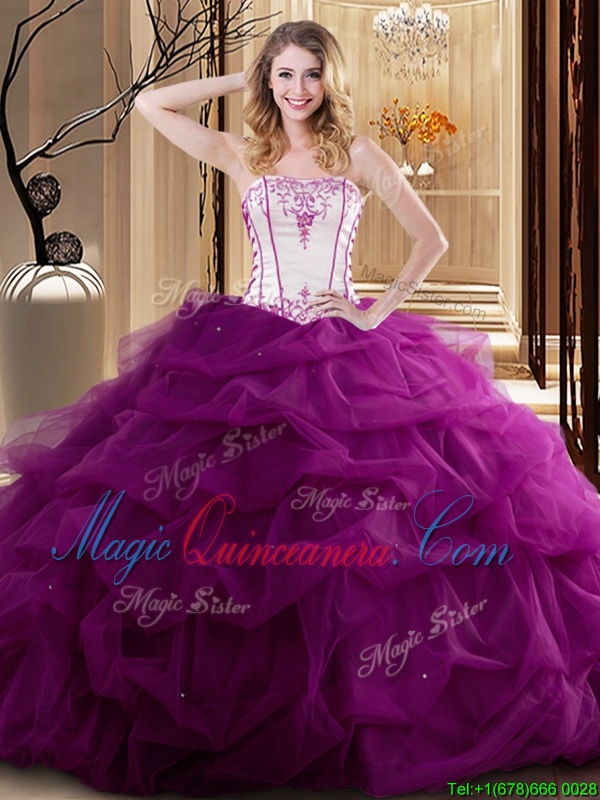 White and Fuchsia Lace Up Quince Ball Gowns Embroidery and Ruffled Layers Sleeveless Floor Length