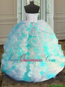 , White and Green Sleeveless Beading and Ruffles Floor Length Quinceanera Dresses