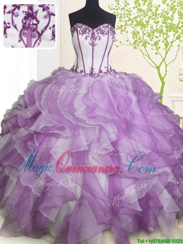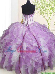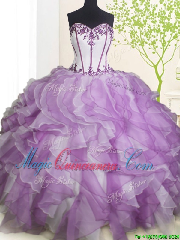 White And Purple Ball Gowns Beading and Ruffles Vestidos de Quinceanera Lace Up Organza Sleeveless Floor Length