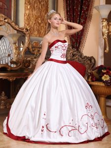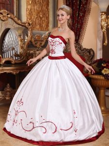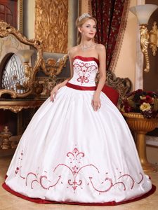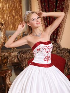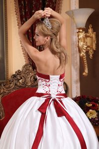 White and Red Sweet Sixteen Quinceanera Dresses with Embroidery