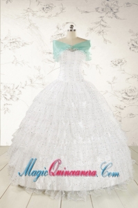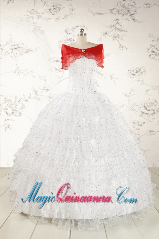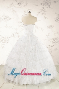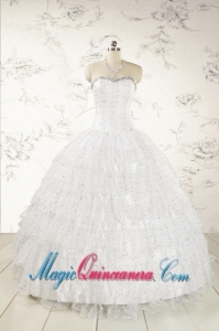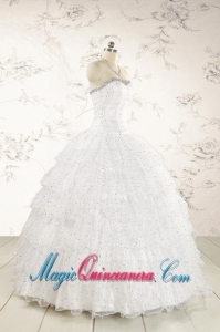 White Ball Gown Formal Quinceanera Dresses with Sequins and Ruffles