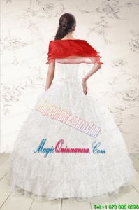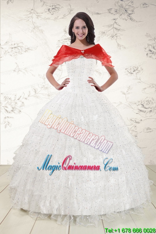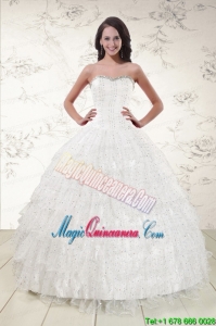 White Ball Gown Formal Quinceanera Dresses with Sequins and RufflesWhite Ball Gown Formal Quinceanera Dresses with Sequins and Ruffles