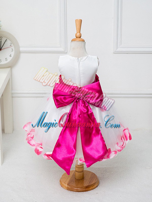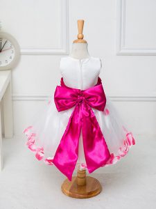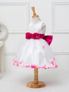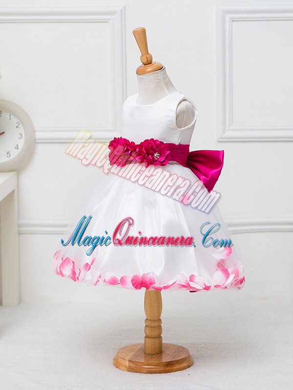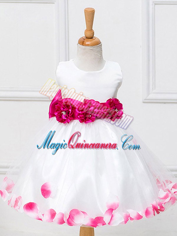 White Ball Gowns Appliques and Hand Made Flower Pageant Dress Womens Zipper Tulle Sleeveless Knee Length