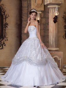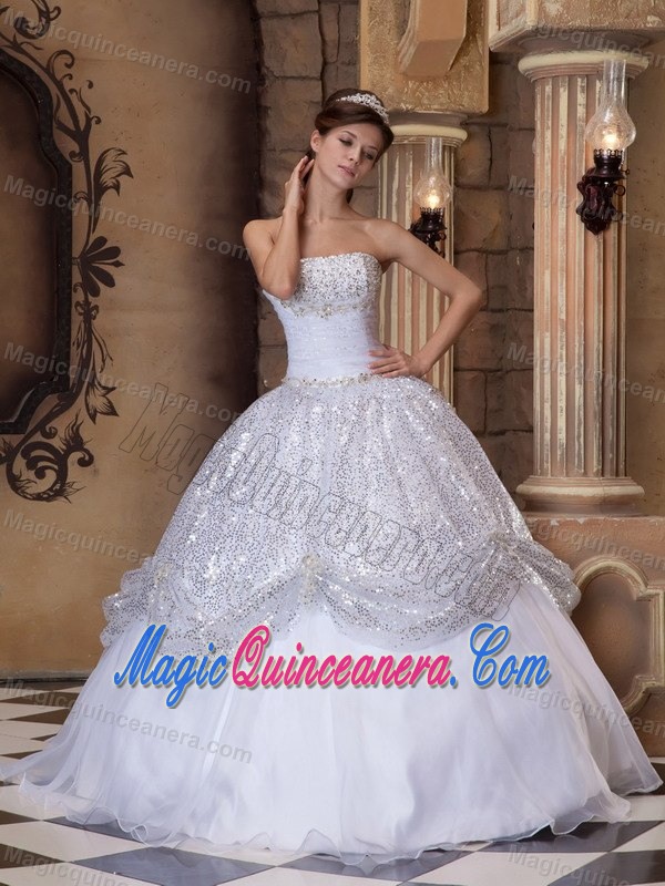 bottom price quinceaneras dresses in organza, White Floor-length Quinceanera Dress with Sequins in Newtownabbey