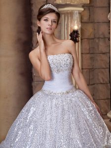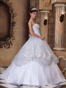 White Floor-length Quinceanera Dress with Sequins in Newtownabbey
