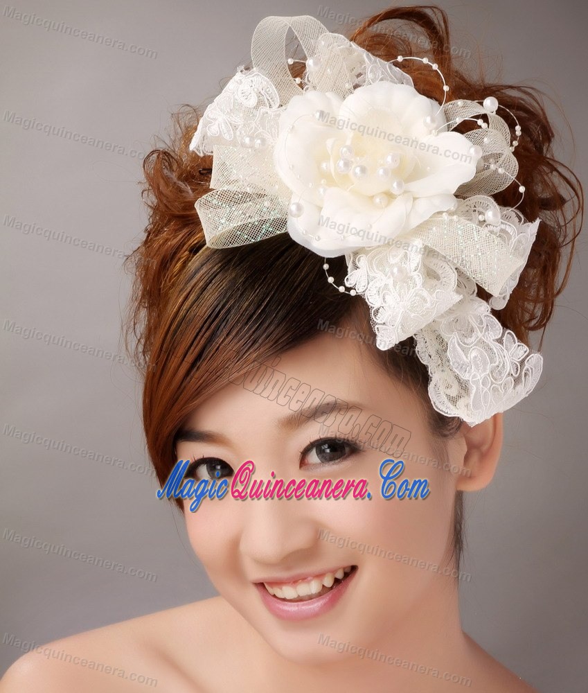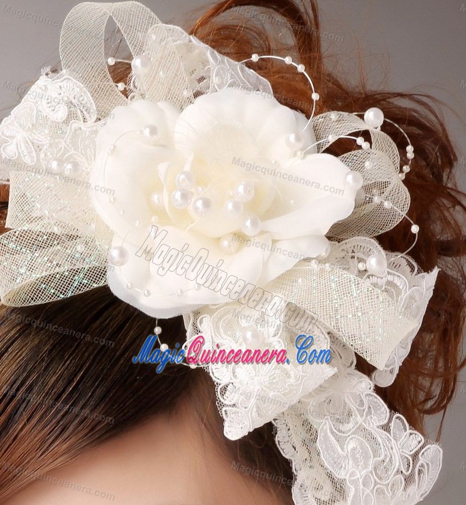 White Imitation Pearls Flower Sweet Tulle Fascinators