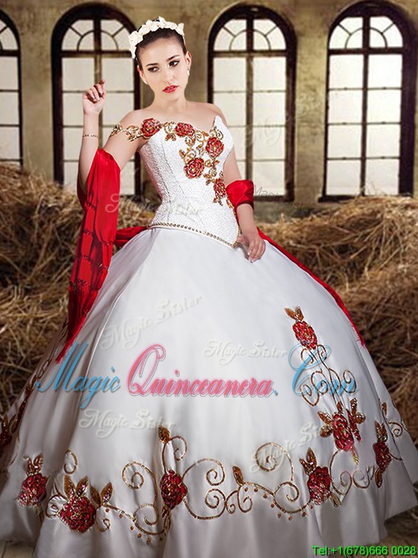 White Lace Up One Shoulder Beading and Embroidery Ball Gown Prom Dress Taffeta Sleeveless