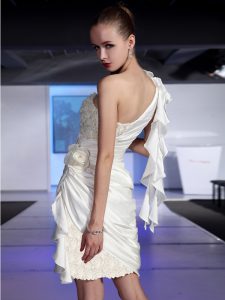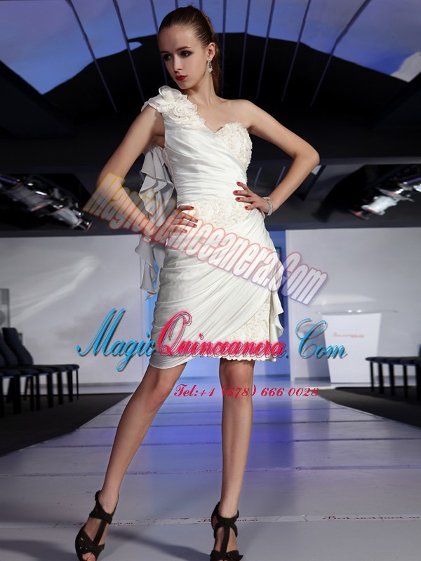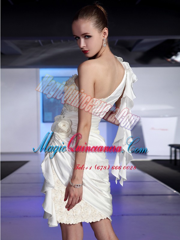White One Shoulder Neckline Lace and Ruching Mother Of The Bride Dress Sleeveless Zipper