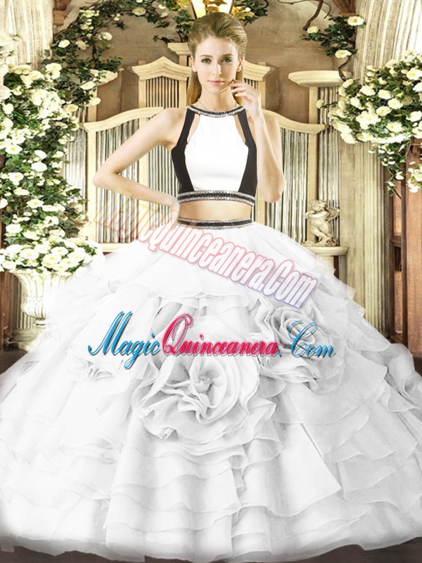 White Sleeveless Ruffled Layers Floor Length 15th Birthday Dress