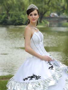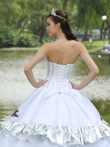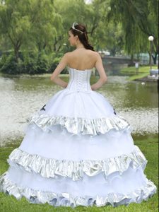 bottom price quinceaneras dresses in taffeta and organza, White Strapless Quinceanera Dresses with Appliques and Flouncing