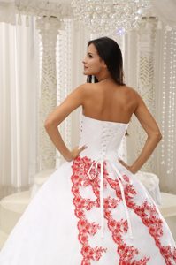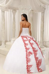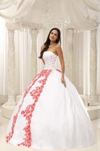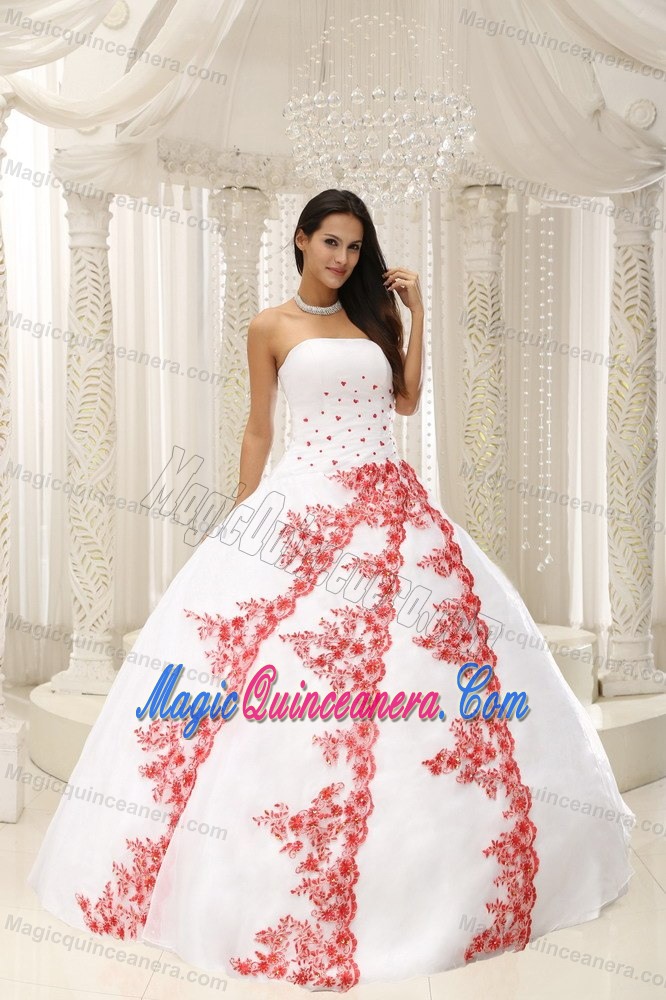 White Sweet 16 Dresses by Taffeta and Organza with Red Appliques