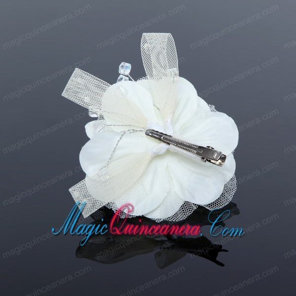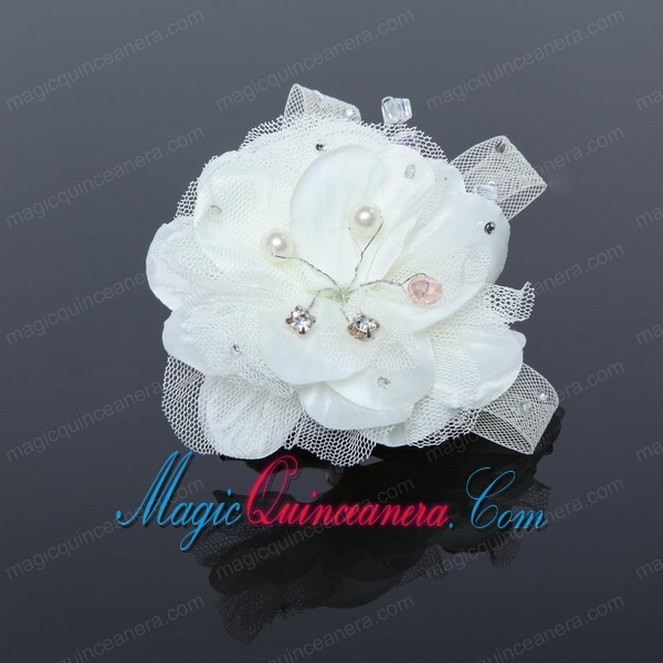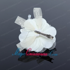 White Tulle Wedding Fascinators Hair Flower with Rhinestone