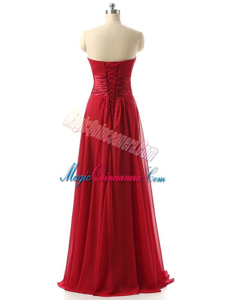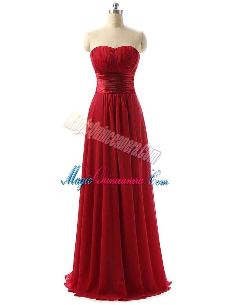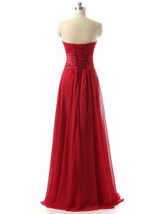 Wine Red Empire Ruching Court Dresses for Sweet 16 Lace Up Chiffon Sleeveless Floor Length