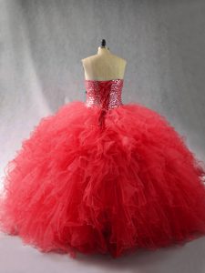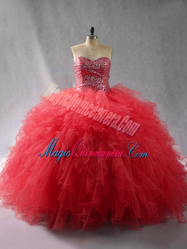 Wine Red Sleeveless Beading and Ruffles Floor Length Sweet 16 Dress