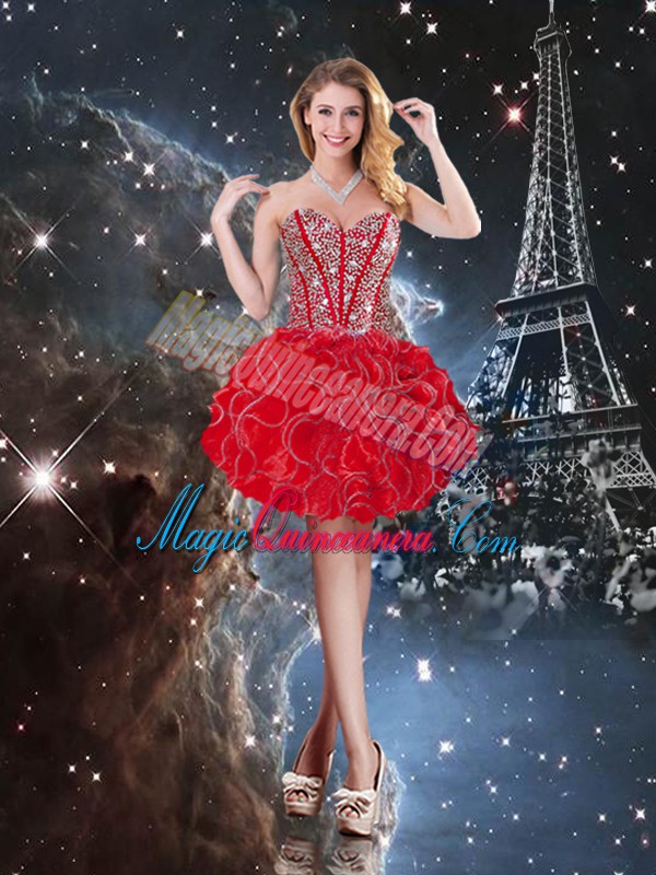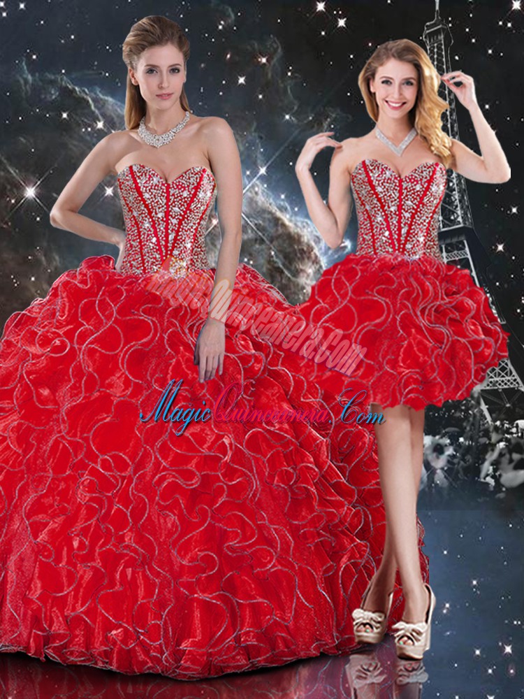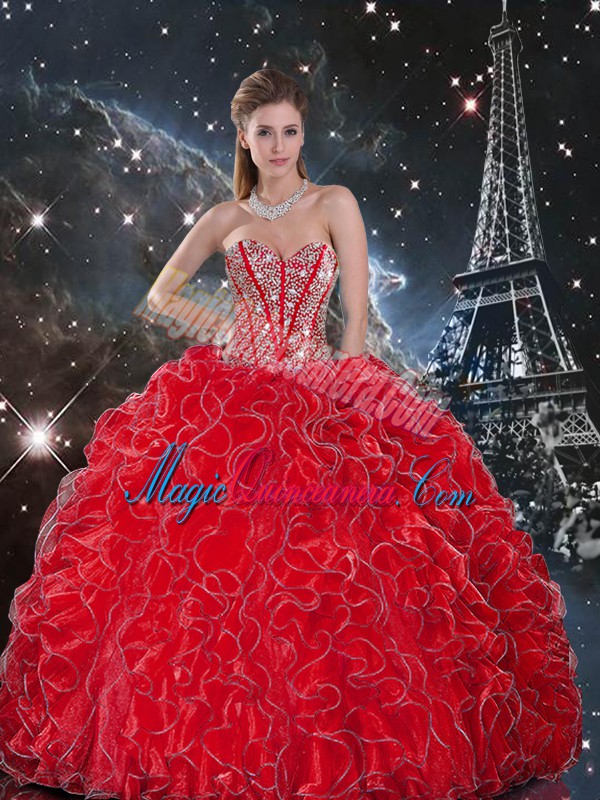 Wine Red Sweet 16 Dress Military Ball and Sweet 16 and Quinceanera with Beading and Ruffles Sweetheart Sleeveless Lace Up - Magic Quinceanera
