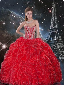 Wine Red Sweet 16 Dress Military Ball and Sweet 16 and Quinceanera with Beading and Ruffles Sweetheart Sleeveless Lace Up