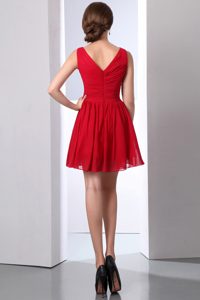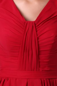 wine red v-neck ruches chiffon quince dama dresses of mini length,